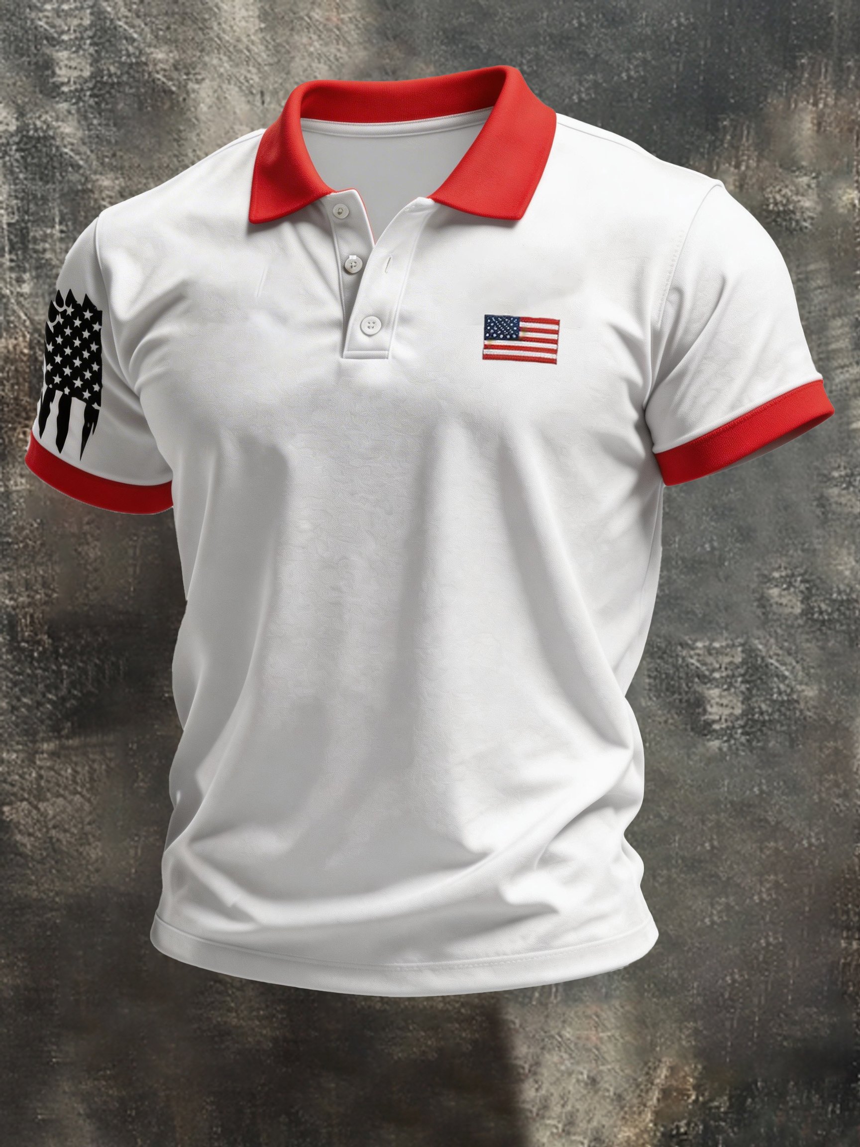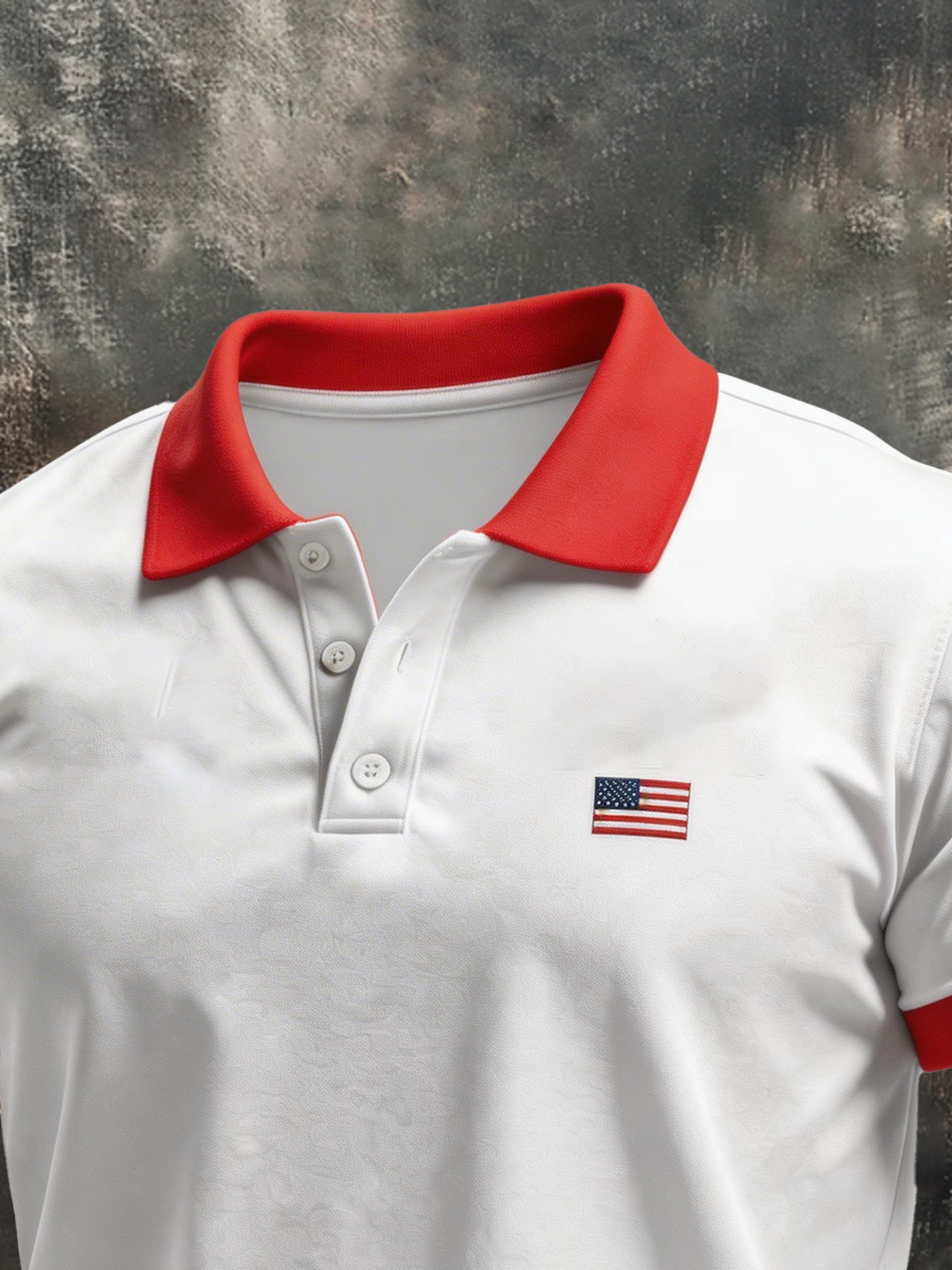 Men's Retro Patriot Color Block Polo Collar Short Sleeve