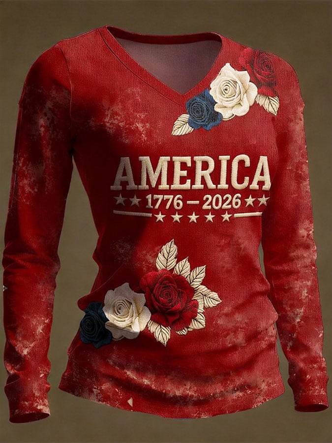 Women's American 250th Anniversary Print V-Neck Top