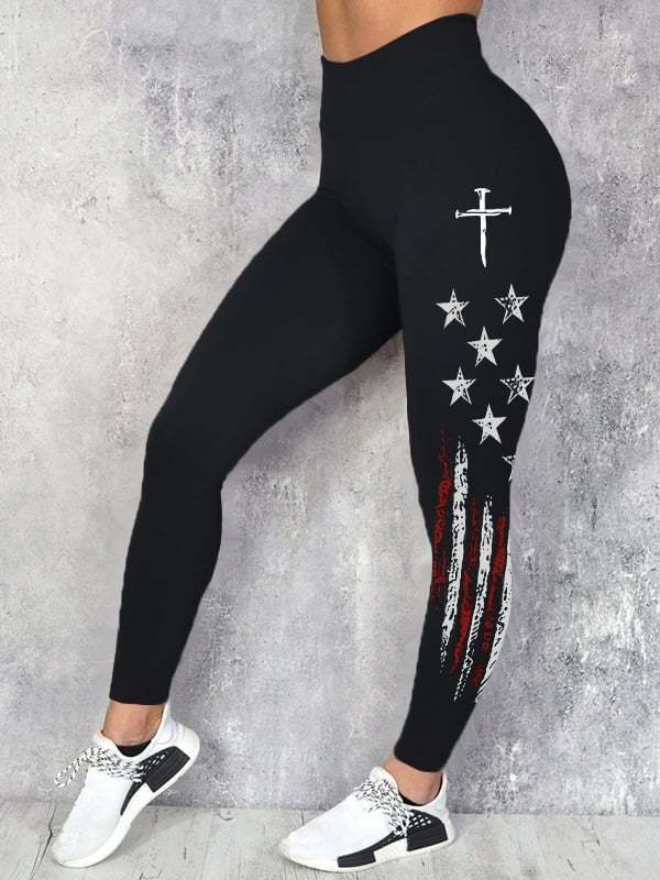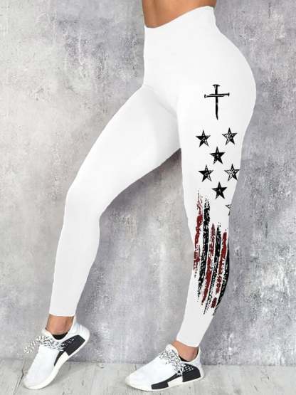 Women's casual retro flag-print leggings